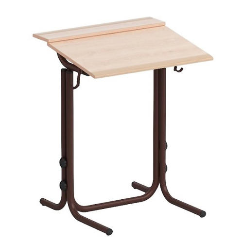 Столешница размещается на металлокаркасе круглого сечения, на свободных концах труб каркаса установлены заглушки из ударопрочных полимеров. Высота регулируется в зависимости от роста учащегося от 900 до 1200 мм, наклон столешницы регулируется от 0 до 15 градусов.
