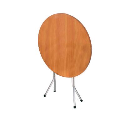 Складная мебель с Х-образными опорами подходит для зоны приема пищи. Круглая столешница после эксплуатации приводится в вертикальное положение. ЛДСП декорирована имитацией рисунка ценной породы дерева. Пленка из меламина устойчива к действию УФ-лучей. Ножки с защитными колпачками уберегают пол от царапин.