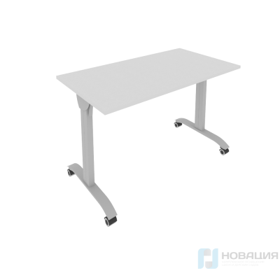 Каркас стола состоит из траверсов и боковых шарнирных опор. Положение складной столешницы закрепляется при помощи механического фиксатора. На элементах каркаса предусмотрены накладки для защиты рук. Столешница оснащена кромкой 2 мм. На дугообразных ножках стола есть колеса для транспортировки.