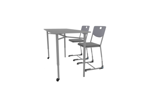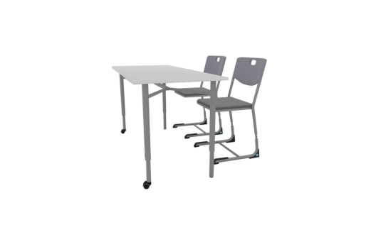 Столы оснащены телескопическими ножками на колесах, благодаря чему легко передвигаются и компонуются между собой. Композиции из таких столов пригодятся во время работы в группах. Параметры стола подстраиваются под аудиторию: высота фиксируется в 5-ти положениях. Столешница из ЛДСП имеет форму прямоугольника, верхние кромки и края скругляются.