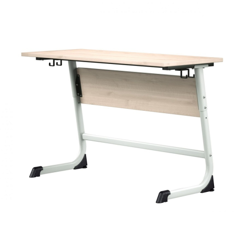 Стол с фиксированной высотой рассчитан на 2-х учащихся. Каркас из плоскоовального стального профиля (50х30х2 мм) усилен перекладиной. Подпятники полозьев подстраиваются под неровности пола. Между опорами устанавливается экран из ЛДСП.