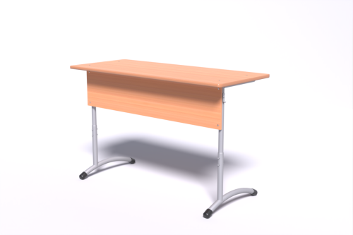 Двухместный стол регулируется по высоте. Каркас выполнен из круглой трубы диаметром 28 мм и 32 мм, столешница - из ЛДСП, облицована ПВХ-кромкой. Трубы на телескопическом соединении.