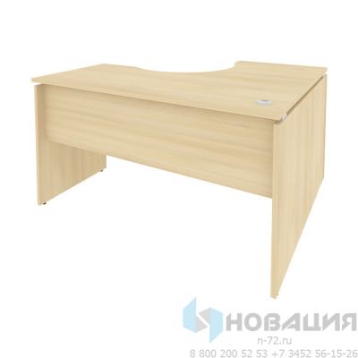 Угловой стол со скошенным углом для удобства посадки за рабочим местом размещается в кабинете ДОУ или школы. Под столешницей располагаются сплошные опоры и царга, в наличии отверстие для проводов с пластиковой крышкой. Предусматривается регулировка опор под неровности покрытия. Поверхности из ЛДСП отделаны кромкой (0,4 и 2 мм) в цвет мебели.