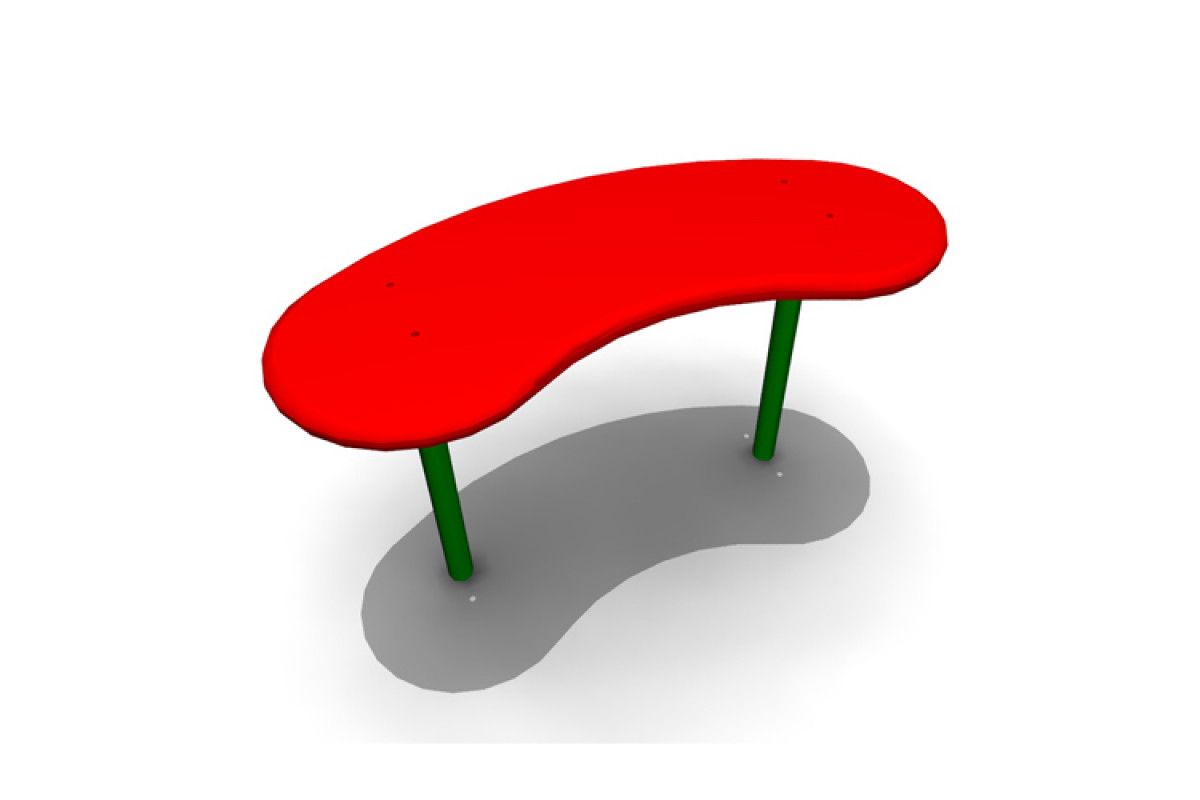 Столик для песочницы размещается на уличной площадке детского сада. Представляет собой фанерный лист в форме полумесяца, окрашенный гипоаллергенной краской и закрепленный на двух стойках. Углы столешницы скруглены. Металлические элементы подвергнуты гальванизации, фанерные составляющие отшлифованы.