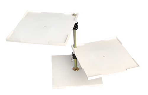 Конструкция столика включает утяжеленное основание, стойку и две демонстрационные плоскости, которые могут вращаться на 360° и оснащены зажимными устройствами.