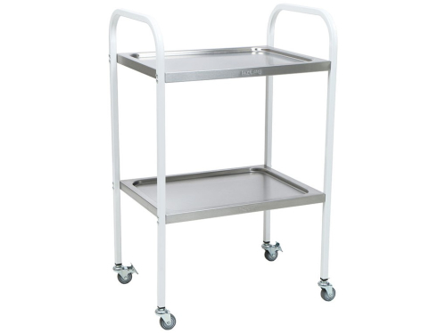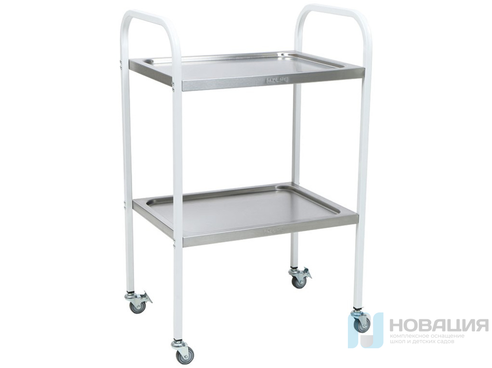 Мебель с 2-мя дугообразными ручками и 4-мя колесами служит для хранения и доставки приборов, инструментов, медикаментов. Изделие спокойно переносит обработку дезинфицирующими средствами. Полки медицинского столика выдерживают нагрузку в 10 кг.