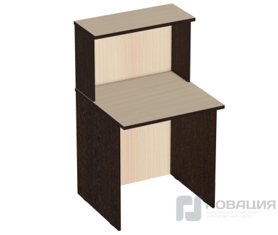 Прямой модуль с надставкой и 4-угольной столешницей (с кабель-каналом) позволяет установить стационарный ПК, а также хранить журналы, книги, картотеку. Кафедра будет уместна в читальном зале, библиотеке. Конструкция из прочных материалов стоит на двух сплошных деревянных опорах.