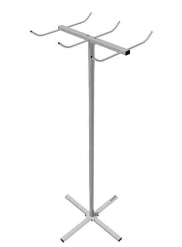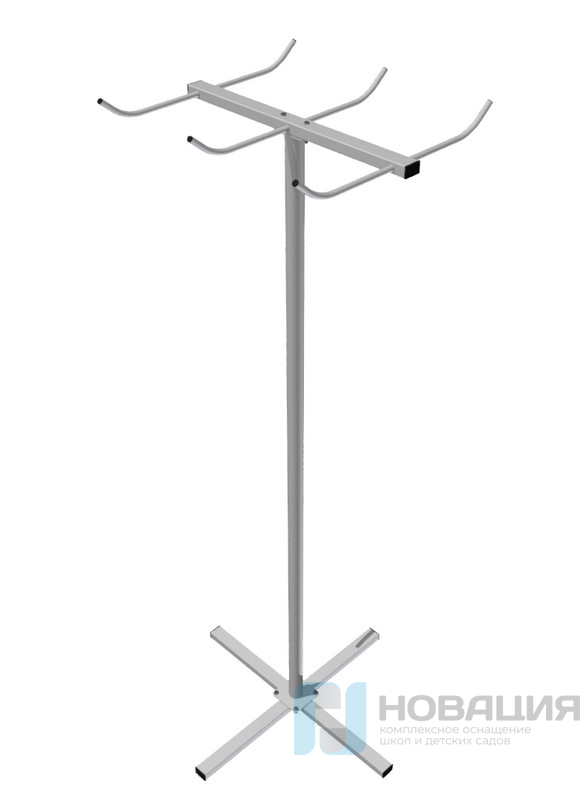 Стойка для скакалок и эспандеров используется в школьном спортзале. Конструкция располагает 3-мя парными вешалками на вертикальной стойке с крестообразным основанием.