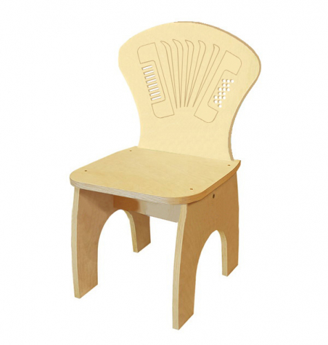 Стул покрыт в 2 слоя лаком. Спинка украшена резным рисунком аккордеона.