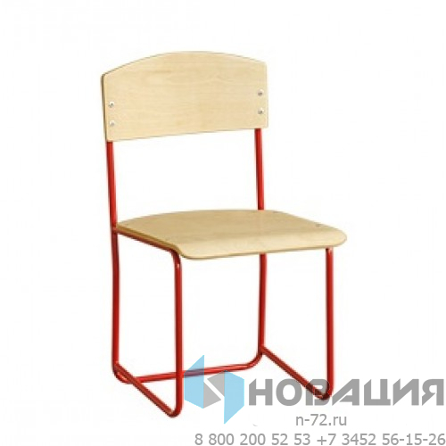 Детский стул отвечает требованиям ГОСТа. Металлический каркас из трубы круглого сечения. Фанерные элементы держатся на заклепках. Верх спинки и передний край сиденья изготовлены с учетом эргономики, линии сглажены.
