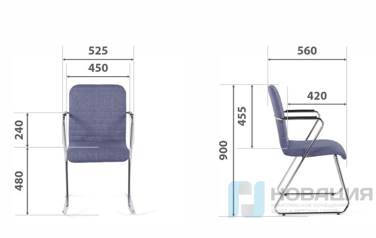 Кресло с пластиковыми накладками на подлокотниках используется в приемной, зале для презентаций, лаборатории. Стальной каркас защищается декоративным покрытием.