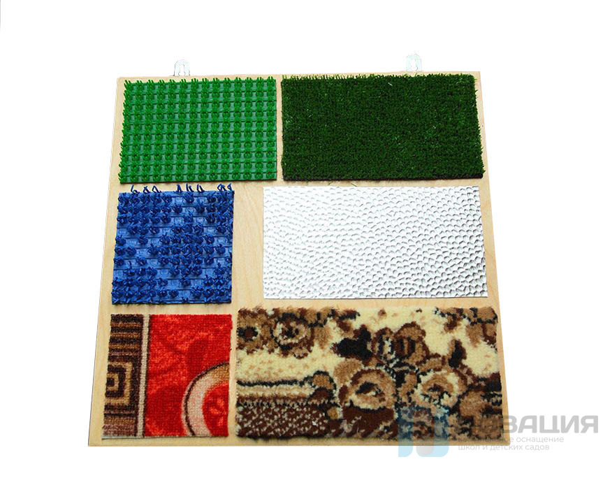 Панель "Текстуры" состоит из шести тактильных покрытий и служит для развития тактильных ощущений. Может использоваться в сенсорной комнате ДОУ и школы.
