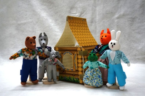- 6 кукол с петельками: мышь, медведь, лягушка, волк, заяц, лиса.