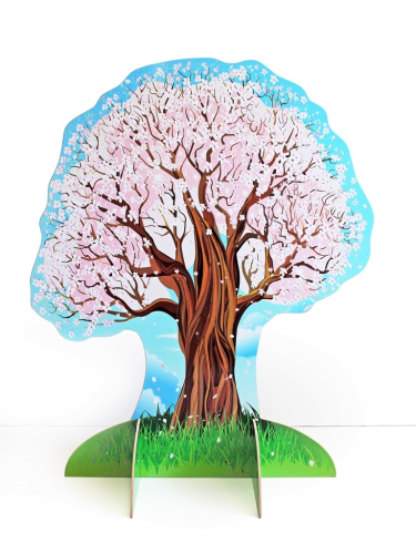 Цветная декорация изготовлена в виде яблони. На одну сторону нанесено изображение весеннего варианта, на другую - зимнего.