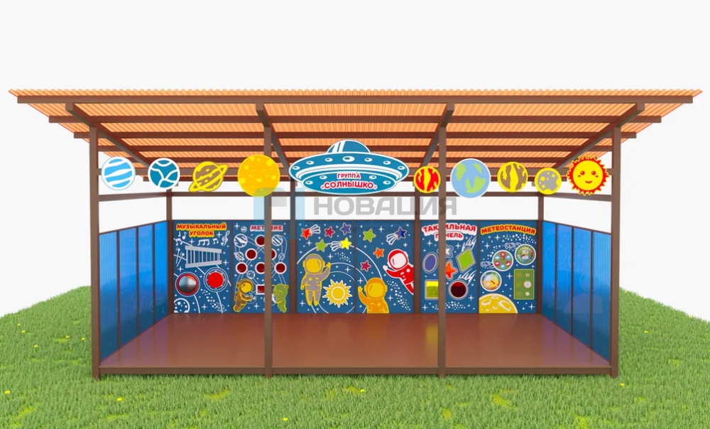 Теневой навес «Космос» — увлекательное путешествие к звёздам на детской площадке! Превратите обычную прогулочную зону в портал в бескрайние космические просторы. Эта яркая и функциональная конструкция не только защитит детей от солнца, но и погрузит их в мир астрономии и космических открытий через игру и обучение.
