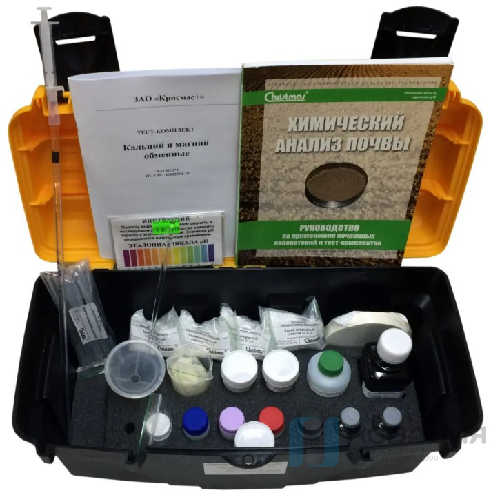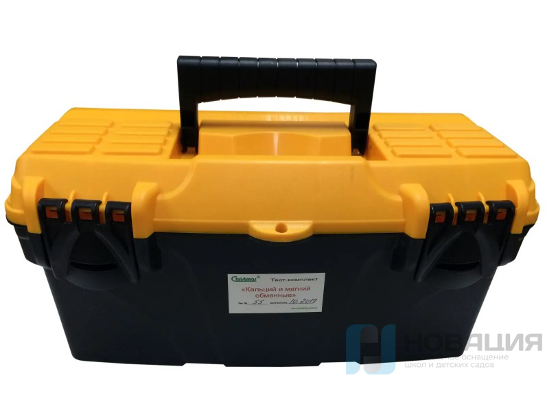 Комплект включает в себя все необходимое: измерительные приборы, реактивы, посуду и документацию, упакованные в прочный переносной кейс.