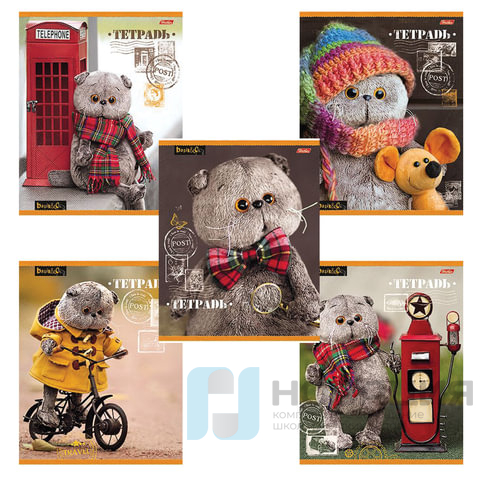 Тетрадь 18 л., HATBER, клетка, обложка картон, "КОТ БАСИК" (5 видов в спайке), 18Т5В1, T213988