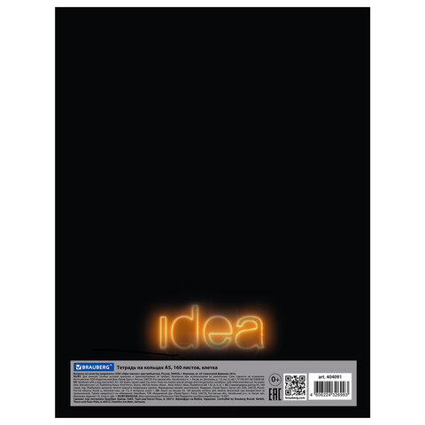 Тетрадь на кольцах А5 165х215 мм, 160 л., твердый картон, клетка, BRAUBERG, "Idea", 404091