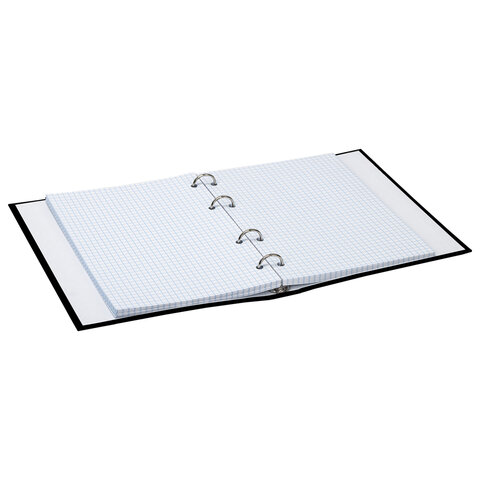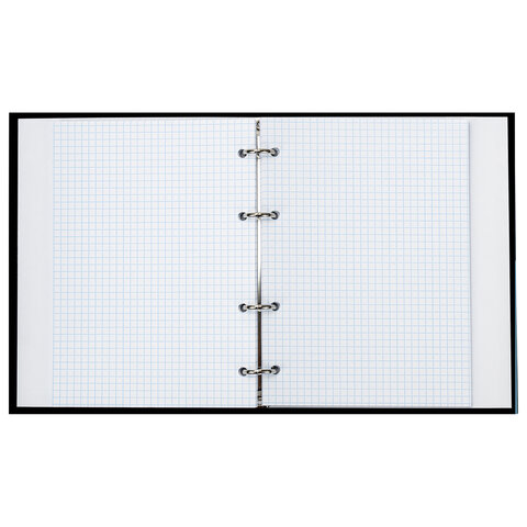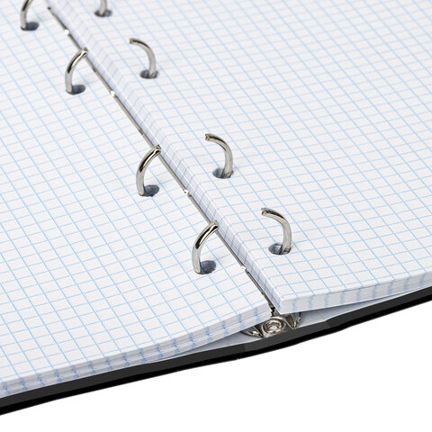 Блок состоит из 160 листов офсетной бумаги белого цвета плотностью 60 г/м2. Линовка – клетка. Жесткая книжная обложка выполнена из переплетного картона и покрыта глянцевой пленкой. Формат А5 является стандартным и обеспечивает комфортное ношение в рюкзаке/ранце или папке. Оборудована кольцевым механизмом с 4-мя кольцами для подшивки сменных блоков, что позволит носить на учебу/работу всего одну тетрадь с возможностью добавлять и менять листы. Диаметр колец составляет 20 мм.