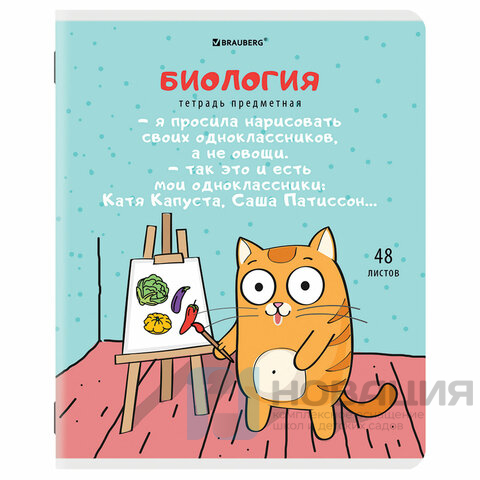 Тетрадь предметная "КОТ-ЭНТУЗИАСТ" 48л, TWIN лак, БИОЛОГИЯ, клетка, BRAUBERG, 404559