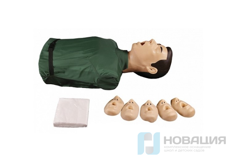 Лицо, голова и шея тренажера выполнены из пластичного материала, который имитирует кожу человека и позволяет проводить регулярную дезинфекцию. Голова манекена откидывается назад.