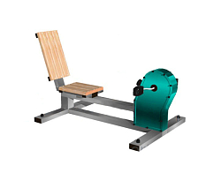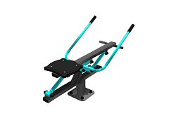 Несущая стойка с пластиковой заглушкой фиксируется на плоской металлической плите. К стойке присоединяются прорезиненные рукоятки и изогнутая труба, которая переходит в сиденье с педалями. Конструкция выдерживает перепады температур. Сиденье выполняется из влагостойкой фанеры, педали пластиковые.
