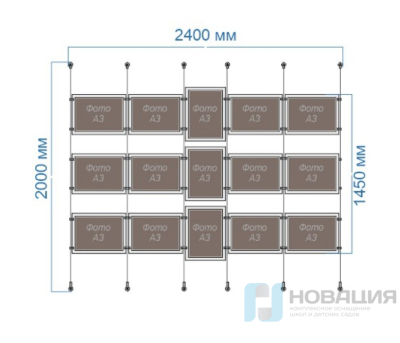 - 3 - 2000х2400 мм, 3 ряда, 12 карманов А3 горизонтальных, 3 кармана А3 вертикальных.