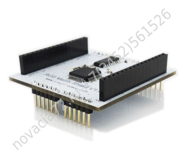 Расширение представляет собой модуль, устанавливаемый на Arduino-совместимый контроллер, к модулю напрямую подключается RGB матрица, также включенная в комплект.
