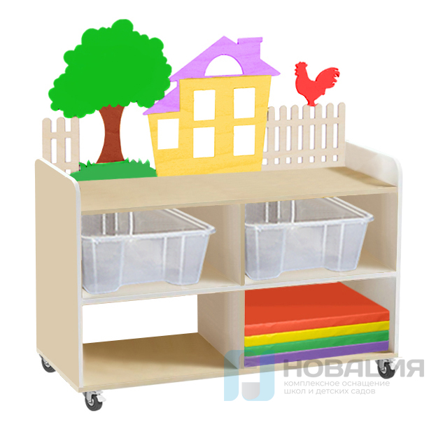 Тумба для хранения игрушек и пособий с декорацией на колесах №3