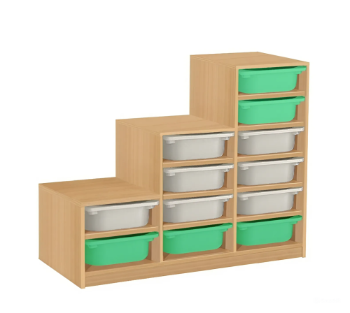 Ступенчатая тумба — практичное решение для экономии учебного и игрового пространства. Рекомендуется для оснащения ДОУ, кабинетов начальной школы, а так же детских досуговых центров, творческих кружков, художественных школ, игровых комнат и т.д.