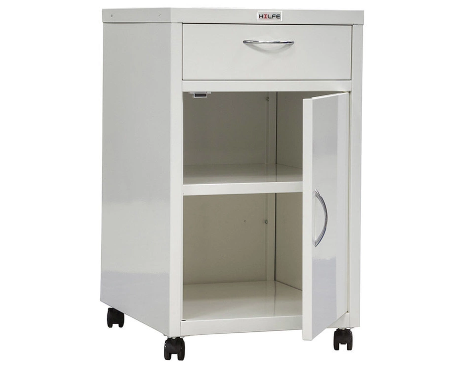 Медицинский шкаф представлен в белом цвете, материал устойчив к воздействию коррозионных процессов.