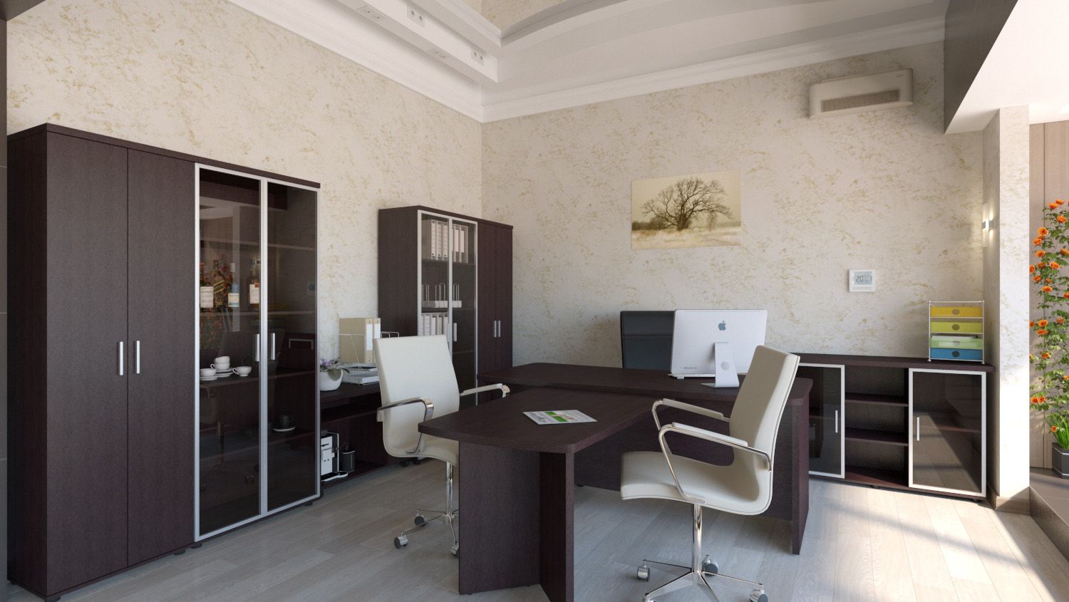 Тумба с стеклом в рамочном профиле размещается в кабинетах ДОУ, школ, прочих муниципальных учреждений. За прозрачными дверцами — по 2 отделения, в средней части тумбы — 3 отделения. Возможность выбора вариантов цветового решения позволяет вписать данный предмет мебели в любую обстановку. Уклон, создаваемый неровностями пола, можно минимизировать с помощью регулируемых подпятников.