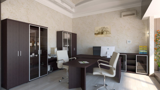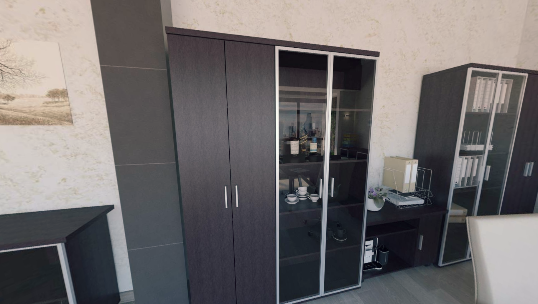 Тумба с двумя стеклянными дверцами и полуоткрытой средней частью размещается в кабинетах ДОУ, школ, прочих муниципальных учреждений. Возможность выбора вариантов цветового решения позволяет вписать данный предмет мебели в любую обстановку.