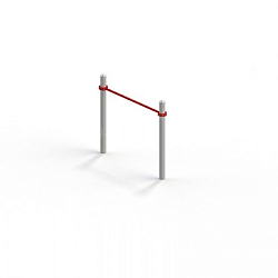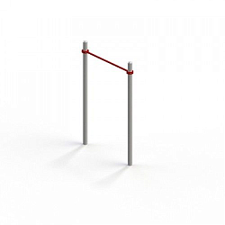Конструкция включает в себя 4 несущие стойки и 3 перекладины. Элементы турника скрепляются хомутами. Концы труб закрываются, сварные швы исключают вероятность получения царапины.