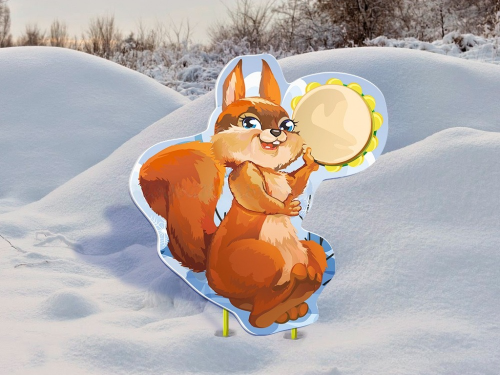 Полноцветная фигура выполнена в виде белочки с барабаном. Покрыта защитной пленкой. Монтируется в грунт при помощи металлических стоек и крепежа (входят в комплект).