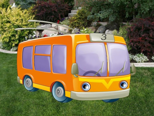 Полноцветная фигура выполнена в виде троллейбуса. Поверхность покрыта защитной пленкой. Устанавливается в грунт при помощи металлических стоек и крепежа (входят в комплект).