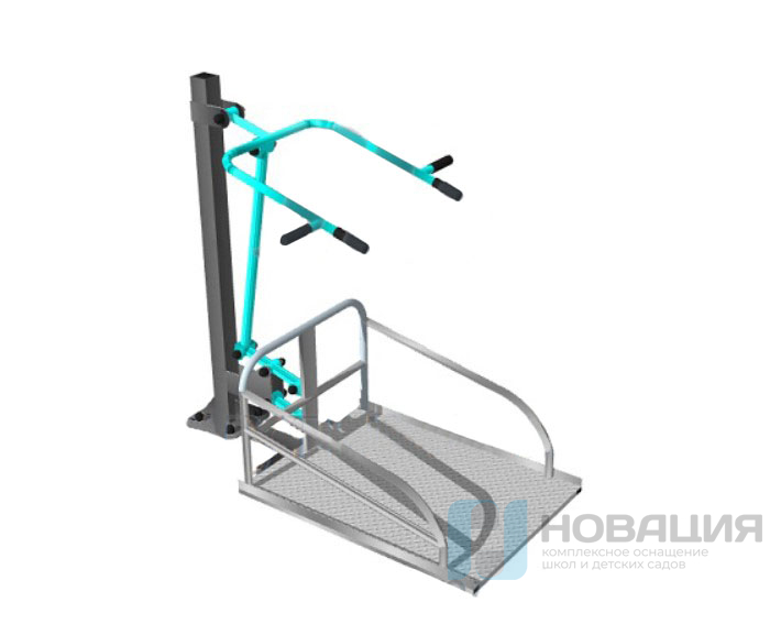 Тренажёр предназначен для людей, передвигающихся в инвалидном кресле. Подходит для занимающихся ростом от 140 сантиметров. Упражнения построены на имитации подтягивания на турнике, помогают развивать мышцы спины, груди и рук. Нагрузка поступает за счёт веса занимающегося.