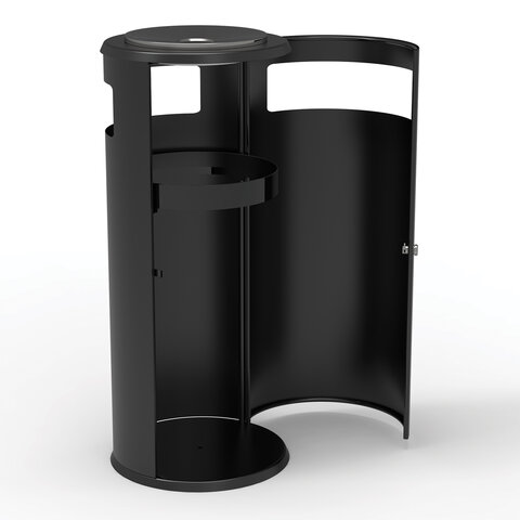 Урна уличная с пепельницей, кольцом для мешка, створка с замком, 955х455х455 мм, 70 литров, черная, "Метрополь-2"