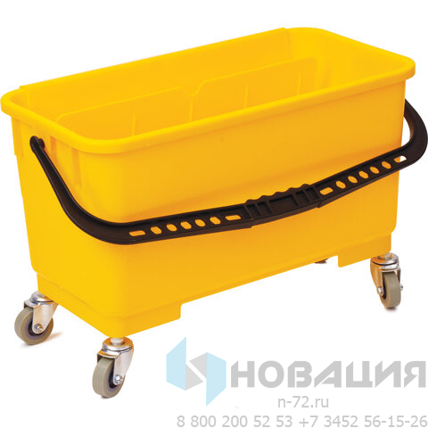 Прямоугольное ведро для мытья окон с отжимом для мопов и шубок. Ведро на 4-х поворотных колесах диаметром 50 мм, которые облегчают транспортировку. Вмещает до 24 л и используется с инструментами для чистки окон. Выполнено из пластика желтого цвета. Размер - 56х29х34 см. Вес - 2,5 кг.