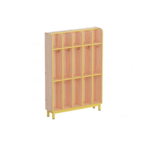 Состоит из пяти секций. Каждая секция состоит из трех частей: верхняя предназначена для стаканов, средняя - для полотенец для лица, нижняя - для полотенец для ног. Средняя и нижняя части имеют по крючку для полотенец.