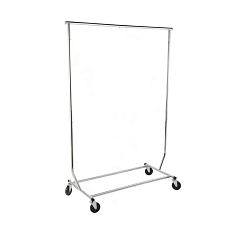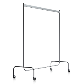 Гардеробная стойка для вешалок представлена рамой с перекладиной и опорами на 4-х поворотных колесах (d 75мм). Конструкцию можно передвигать из одного помещения в другое. Например, доставлять костюмы в гримерную или прачечную.