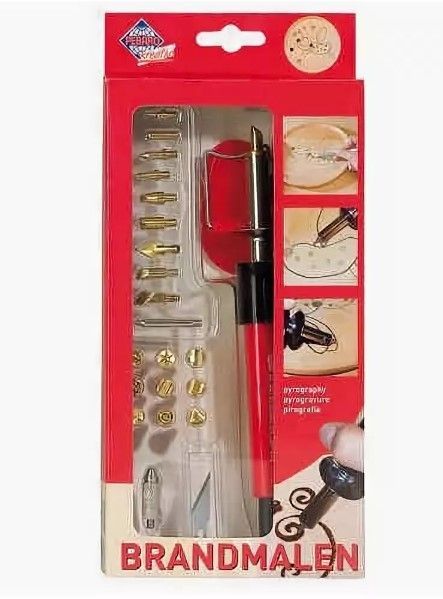 Изделие представляет собой выжигательный аппарат высокого качества с большим количеством насадок (20 шт) для создания фигурных узоров и картинок во время творческих занятий в школе.