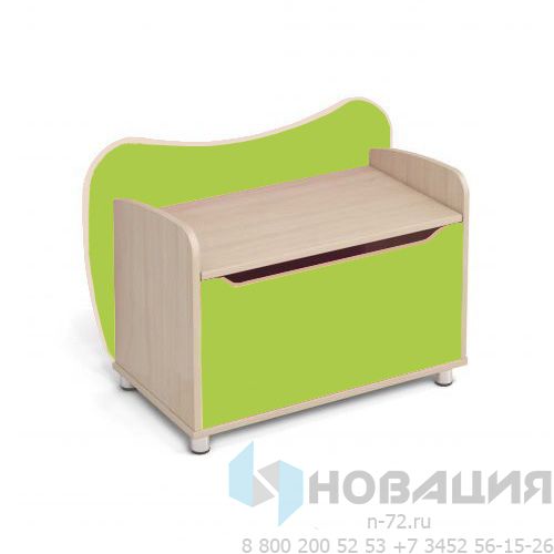 Ящик служит системой хранения в игровой комнате. Корпус опирается на 4 ножки, дополнен фигурной задней панелью. Топ выполняет функцию дополнительной полки, окружен бортиками с закругленными углами.