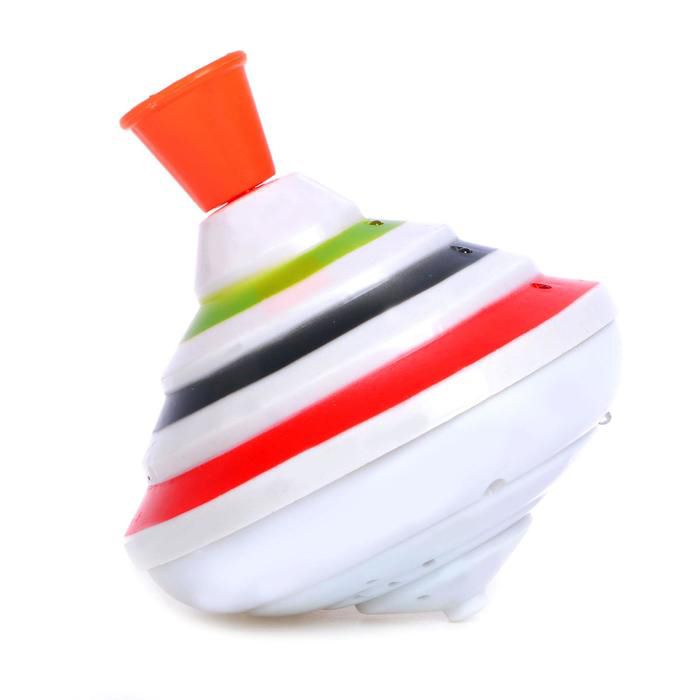 Музыкальная игрушка плавно вращается и постепенно останавливается. Движение сопровождается мелодией. Юла с предохранителем работает от 3-х батареек, для вращения необходимо приподнять и опустить ручку.