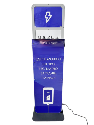 Напольная станция с 2-мя розетками (110-220 В) и кабелями USB заряжает электронные устройства в школах или других муниципальных учреждениях. Установка быстро справляется с задачей и экономит время на подготовку к занятию.