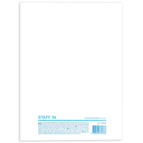 Журнал работ общий, 48 л., картон, офсет, А4 (200х292 мм), STAFF, 130262
