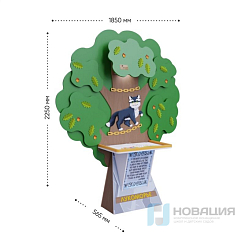 Стойка изготовлена из экологически чистых и гипоаллергенных материалов, обеспечивая безопасность и долговечность даже при активном использовании. Дизайн выполнен в виде сказочного дуба с котом, на стойке размещена знаменитая цитата из поэмы А.С. Пушкина «Руслан и Людмила»: «У лукоморья дуб зеленый...».