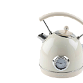 Электрический чайник с металлическим корпусом оснащен индикатором включения и функцией автоматического отключения для безопасного использования.