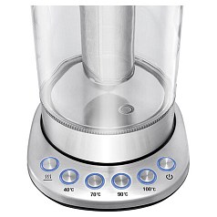 Чайник KITFORT КТ-6115 отлично подойдет для чаепития дома, в офисе или на даче! Он может вскипятить воду или нагреть её до температуры 40, 60, 85, 90°С, что удобно при заварке различных сортов чая, приготовлении кофе и подогреве детского питания.