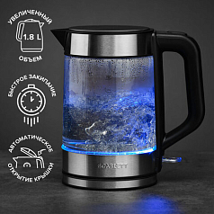 Чайник SCARLETT SC-EK27G101, 1,8 л, 2200 Вт, закрытый нагревательный элемент, стекло, черный
